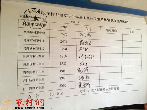 在家溝衛(wèi)生院張院長處,記者了解到,全鎮(zhèn)7個衛(wèi)生室,承擔(dān)公共衛(wèi)生做多少發(fā)多少,有十幾項考核的標(biāo)準(zhǔn),發(fā)到衛(wèi)生室平均下來每人7、8塊錢,衛(wèi)生院雇了四個人,幫忙做公共衛(wèi)生服務(wù),這些人員的工資也從這部分經(jīng)費里支付。