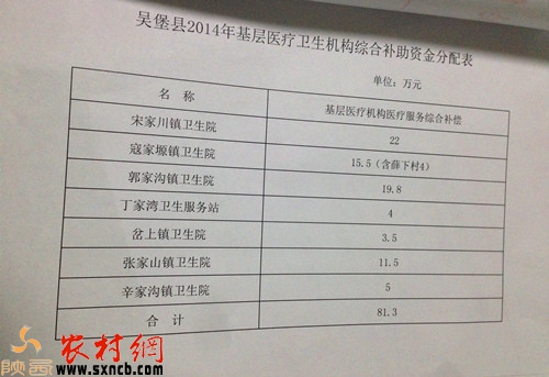 吳堡縣2014年基層醫(yī)療衛(wèi)生機構(gòu)綜合補助資金分配表