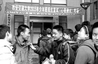昨日上午,西安交通大學(xué)興慶校區(qū)外文樓外,來自全國的少年們正在等待少年班復(fù)試。今年是西安交大少年班第30年招生,來自全國16省125所中學(xué)的508名考生參加,考生最小不滿13歲,最大不超15歲。今年少年班錄取名額約130個。進(jìn)入交大少年班分幾步?少年班畢業(yè)生都去哪兒了?