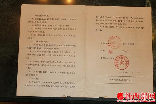 初次見到胡文義,他已經(jīng)是一個70多歲滿臉滄桑的老人了。問及事情原委,老人告訴筆者:“1988年3月,時任劉西組組長楊海禮的堂兄楊海智以開辦磚廠為由,強行占用我的13畝責任田用于磚廠的擴建,迫于無奈我四處奔走反映,楊海智迫于壓力,于5月1日在時任劉家村黨支部書記張保坤、村主任盧建軍、劉西村民小組組長楊海禮的見證下和我簽訂了一份賠償協(xié)議書?!惫P者在這份協(xié)議書上看到,楊海智將他的6畝責任田頂替給胡文義老人耕種,剩下的7畝責任田則按夏糧每畝600斤,秋糧每畝500斤的標準進行賠償。并于1988年7月底前在當?shù)靥O果園里劃撥11畝多的責任田供胡文義老人使用。按協(xié)議書的約定,在楊海智占用胡文義老人土地的期限內(nèi)(實為一年),應給老人賠償4200斤的糧食,但到最后只賠償了3000斤。而當初承諾劃撥的土地也沒了消息。直到89年復耕以后,才重新劃撥了七畝二分地供老人使用。