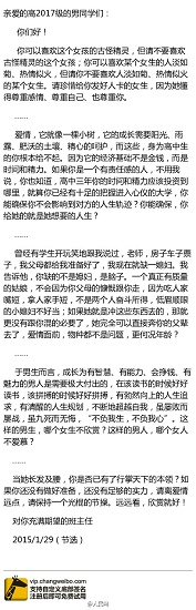 其實,這封信名為《請保持光棍的節(jié)操》,去年曾在網(wǎng)絡上爆紅。老師們特意選了這篇文章,并進行改編,加入了自己想對學生說的一些話。