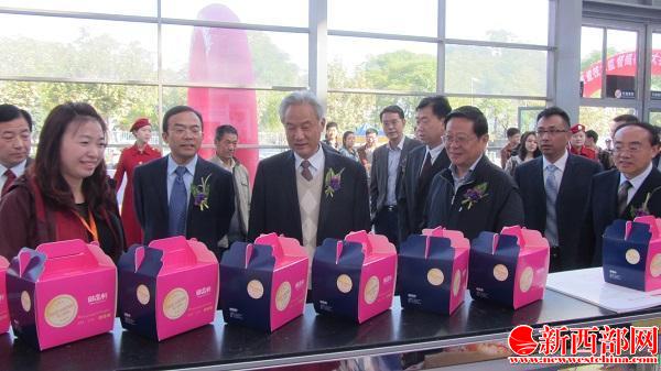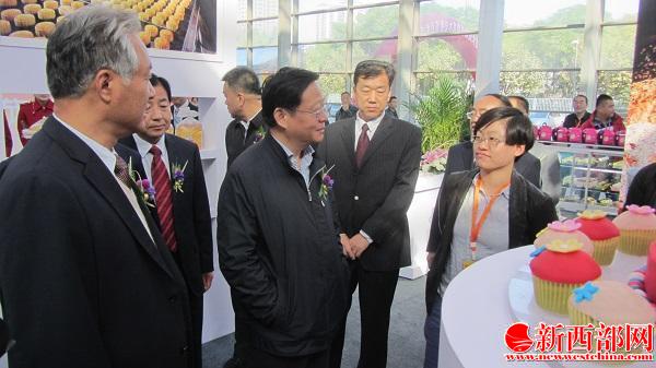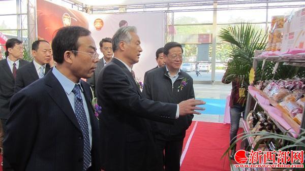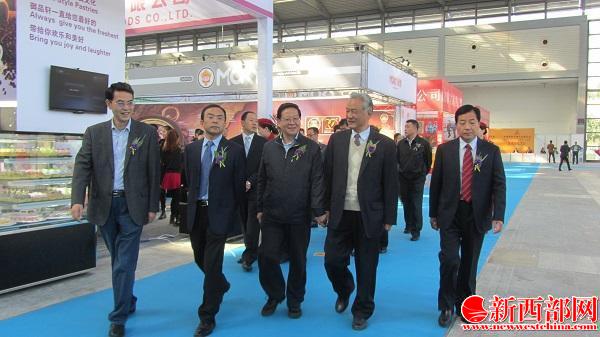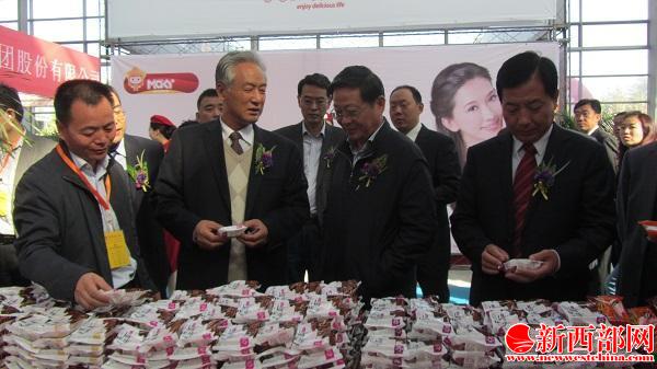 領(lǐng)導(dǎo)和嘉賓們參觀陜西振彰食品有限公司旗下品牌御品軒展位。新西部網(wǎng) 王順利攝