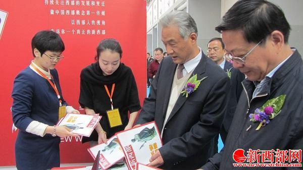【10:33】陜西省質(zhì)量強(qiáng)省工作推進(jìn)委員會(huì)副主任、陜西省質(zhì)量技術(shù)監(jiān)督局黨組書記、局長(zhǎng)仵西居(右二),陜西省第十一屆人大常委會(huì)原秘書長(zhǎng)、陜西省政府參事、國(guó)際應(yīng)急管理學(xué)會(huì)中國(guó)委員會(huì)副主席桂維民(右一)等領(lǐng)導(dǎo)到新西部雜志社展位前閱讀雜志。新西部網(wǎng) 王順利攝