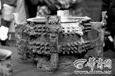 有趣的是,一件在壁龕里受損的青銅罍被吊裝上來時,身上被紗布纏得嚴嚴實實?,F場的專家打趣說,這是給骨折青銅器的包扎。