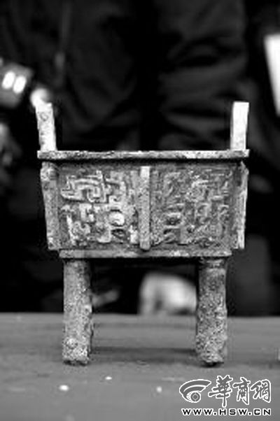 昨日提取的34件青銅器中,最先引爆全場的是一件不起眼的四足小方鼎。