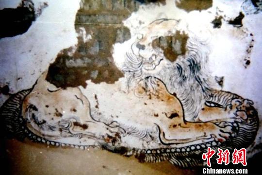 南壁繪制的臥獅。陜西省考古研究院供圖