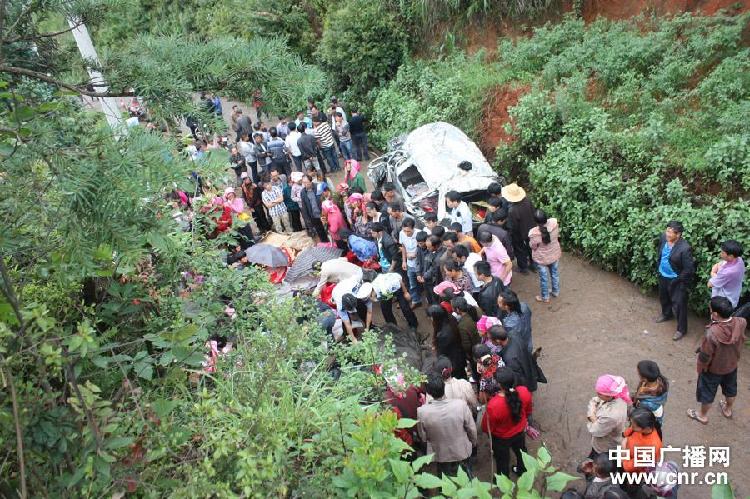 記者從云南羅平縣政府獲悉,2013年8月11日8時10分,云南羅平縣阿崗鎮(zhèn)戈維村委會挖玉沖村村民15人乘坐云DV5586號長安牌微型車在村中下陡坡左轉(zhuǎn)急彎處,車輛失控駛離路面,翻下22.8米山坡,墜落于該道路下一路段路面上,造成10人當(dāng)場死亡,1人送醫(yī)院搶救無效死亡,4人受傷的道路交通事故(死者中男性5人,女性6人,年齡最大63歲,最小1歲,孕婦1人,死傷者均系當(dāng)?shù)卮迕?。目前,駕駛?cè)饲闆r正在調(diào)查核實中。