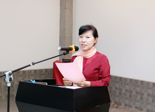 王莉霞在致辭時說,內(nèi)蒙古自治區(qū)是中國共產(chǎn)黨領(lǐng)導(dǎo)下成立的第一個省級少數(shù)民族自治區(qū)。70年來,全區(qū)統(tǒng)一戰(zhàn)線廣泛凝聚人心、匯聚力量,在自治區(qū)革命、建設(shè)、改革的各個時期都發(fā)揮了重要作用,作出了歷史性貢獻(xiàn)。這次展出的140余幅書畫作品,深情謳歌了以習(xí)近平同志為核心的黨中央對內(nèi)蒙古各族人民的親切關(guān)懷,充分彰顯了統(tǒng)一戰(zhàn)線廣大成員熱愛黨、熱愛祖國、熱愛中華民族大家庭的時代主旋律。全區(qū)統(tǒng)一戰(zhàn)線要繼承發(fā)揚(yáng)優(yōu)良傳統(tǒng),緊緊抓住迎接黨的十九大勝利召開、慶祝自治區(qū)成立70周年的重大契機(jī),組織開展豐富多彩的活動,更加緊密地團(tuán)結(jié)在以習(xí)近平同志為核心的黨中央周圍,圍繞中心、服務(wù)大局,凝聚正能量、畫好同心圓,在打造祖國北疆亮麗風(fēng)景線的偉大實(shí)踐中創(chuàng)造新業(yè)績、展現(xiàn)新作為。