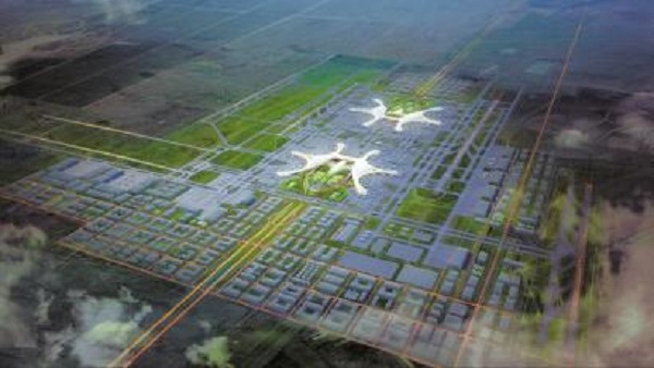 成都天府國際機(jī)場遠(yuǎn)期整體鳥瞰。(效果圖)