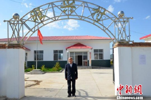 煥然一新的旺興村村委會(huì)和日漸蒼老的郭子孝。 馮志軍 攝