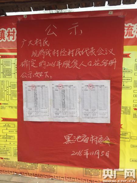 中壩鎮(zhèn)黑池廟村村委會(huì)的公示板.