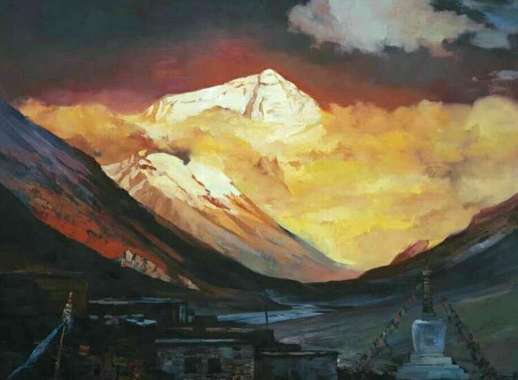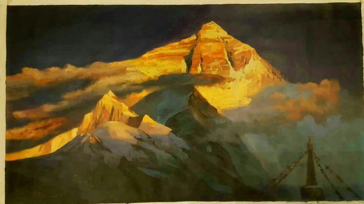 這么多年的登山經(jīng)歷使陳大衛(wèi)深知,極高海拔登山探險,面對的是艱險甚至死亡,高山向?qū)?、高山協(xié)作是登山者唯一的護航者,他們身先士卒,往往身處險境,擔(dān)負(fù)重任。圖為拍賣作品《珠穆朗瑪》。