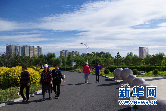 市民在集寧區(qū)健康主題公園晨練。(何欣怡 攝)