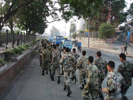 尼泊爾政府在對待境內(nèi)“藏獨”勢力問題上采取了“不留余地、不找借口、不惜代價、堅決打擊”的政策,對“藏獨”分子頭目采取了“預(yù)警性行動”,對一些寺廟的頭目也做了重點“教育”。2010 年7 月,尼警方采取嚴密措施限制“流亡藏人”為達賴舉行慶生集會,不僅明令禁止議員和政府官員參見,而且逮捕了數(shù)百名搞所謂“宗教活動”的“藏獨”分子,使達賴利用生日宣傳“藏獨”的陰謀落空。圖為尼泊爾邊境部隊。