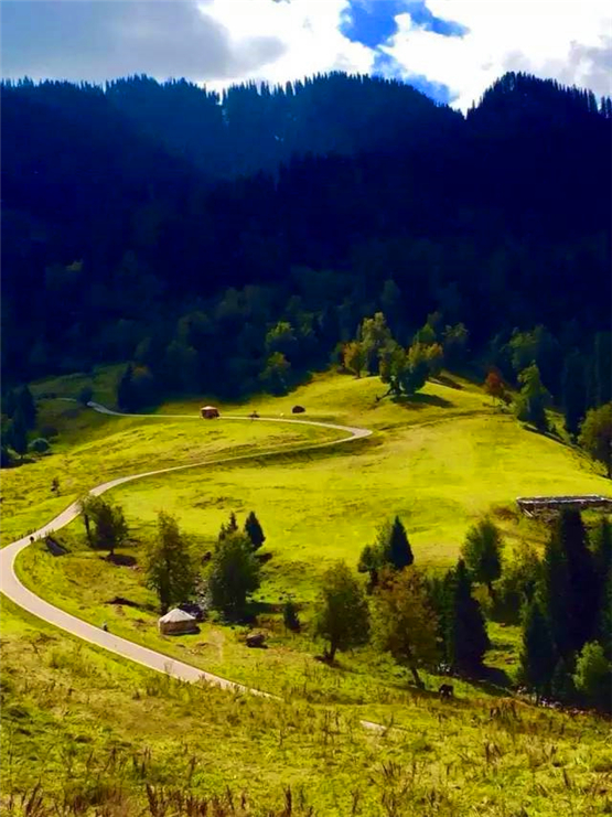 盤龍谷是大自然的杰作,近處的山林依偎著遠處的雪山,沿山路在綠草地、白氈房、彩山林、黑牲靈中蜿蜒穿行,儼然一道色彩的盛宴,自然純凈,猶入童話世界,不染世俗。
