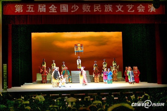 第五屆全國少數(shù)民族文藝會(huì)演由國家民委、文化部、國家新聞出版廣電總局和北京市人民政府聯(lián)合主辦,共有來自全國31個(gè)省、自治區(qū)、直轄市,新疆生產(chǎn)建設(shè)兵團(tuán)、解放軍以及香港、澳門、臺(tái)灣等35個(gè)代表團(tuán)在北京展演43臺(tái)優(yōu)秀劇目。