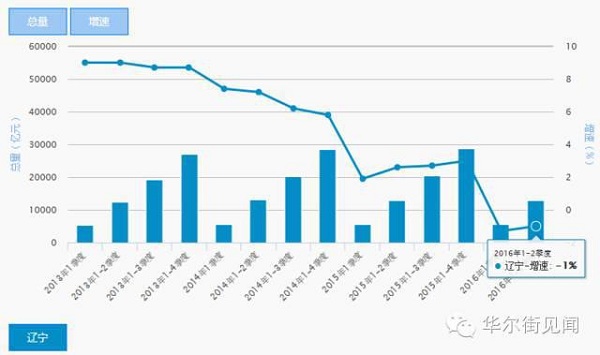 受困于傳統(tǒng)工業(yè)行業(yè)的衰退,遼寧今年一季度出現(xiàn)35年來(lái)的首度季度GDP負(fù)增長(zhǎng)。大連市統(tǒng)計(jì)局官網(wǎng)數(shù)據(jù)顯示,2016年上半年,遼寧省GDP總量為12812.60億元,GDP同比增速為-1%。相比于一季度-1.3%的增速,二季度略有好轉(zhuǎn)但負(fù)增長(zhǎng)趨勢(shì)未有扭轉(zhuǎn)。過(guò)去兩年間遼寧財(cái)政收入呈斷崖式下滑,上半年的固定資產(chǎn)投資和房地產(chǎn)開(kāi)發(fā)投資增速為-58.10%和-31.50%。