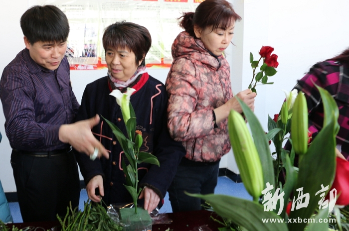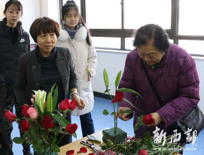 ▲西安古跡嶺社區(qū)聯(lián)合陜西百孝敬老居家養(yǎng)老中心舉辦迎新春插花活動。新西部網(wǎng) 王順利攝影