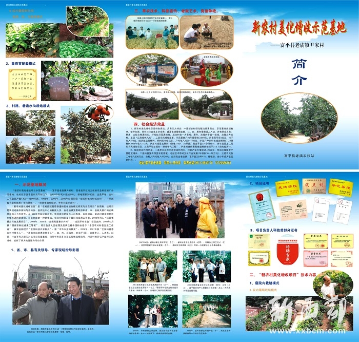 “農(nóng)村美化增收模式”項(xiàng)目2002年列入“陜西省科學(xué)技術(shù)研究發(fā)展計(jì)劃項(xiàng)目”,2005年確定為“陜西省庭院經(jīng)濟(jì)、旱作農(nóng)業(yè)示范村”項(xiàng)目,中組部《黨旗增輝》記錄片采拍。如果進(jìn)一步向富平全縣農(nóng)村推廣,將是一個(gè)5萬畝的“耕地替代工程”。該項(xiàng)目2007年8月份通過科技成果鑒定,專家委員會一致認(rèn)為此項(xiàng)研究與示范,技術(shù)達(dá)到國內(nèi)同類地區(qū)先進(jìn)水平,值得進(jìn)一步示范推廣。同年10月,該項(xiàng)目被評為渭南市科技成果二等獎(jiǎng)(田張厚是項(xiàng)目第一主持人)。2009年被確定為“陜西省農(nóng)業(yè)增產(chǎn)增收技術(shù)示范典型模式”,全省重點(diǎn)示范推廣。時(shí)任渭南市委書記梁鳳民帶隊(duì),參加“渭南市2009年農(nóng)村工作會”的全體市、縣領(lǐng)導(dǎo)到尹家村示范點(diǎn)觀摩。陜西電視臺《村里村外》、渭南電視臺《農(nóng)家四季》欄目分別在2007、2009年專題采訪報(bào)道。