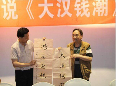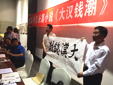 6月5日,由陜西金融作家協(xié)會主辦的,金融作家楊軍長篇小說《大漢錢潮》讀者見面會,在西安半坡國際藝術(shù)區(qū)成功舉辦。文學(xué)陜軍的又一部力作在我省金融行業(yè)問世。來自全國的作家、書畫家以及影視界、金融界人士,共80余人出席了見面會。