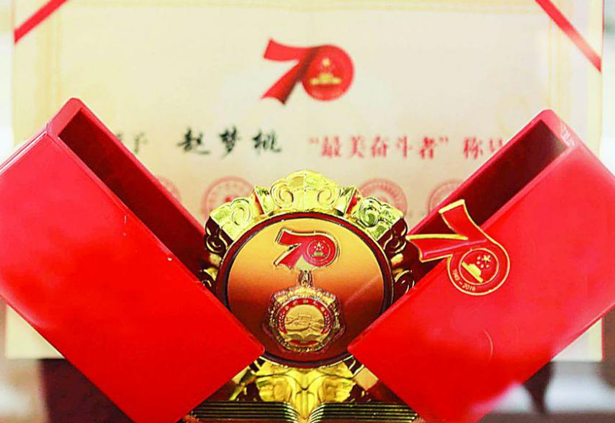 趙夢桃原系西北國棉一廠細(xì)紗乙班擋車工,1956年和1959年是全國勞動模范,并被樹為全國紡織戰(zhàn)線上的一面旗幟。1952年5月,在學(xué)習(xí)“郝建秀工作法”活動中,趙夢桃以優(yōu)異的成績第一個戴上“郝建秀工作法紅圍腰”;她第一個響應(yīng)廠黨委“擴(kuò)臺擴(kuò)錠”號召,看車能力從200錠擴(kuò)大到600錠,生產(chǎn)效率提高了3倍;從1952年至1959年的7年間,僅節(jié)約棉花就達(dá)1200多公斤;她曾42次被評為勞動模范、紅旗手等,創(chuàng)造了月月全面完成國家計(jì)劃,年年均衡生產(chǎn)的好成績;她先后11次跟別人換車,“把困難留給自己,把方便讓給別人。”幫助17位姐妹成為企業(yè)的先進(jìn)工作者。在她的影響帶動下,廠里“人人當(dāng)先進(jìn),個個爭勞?!蔽等怀娠L(fēng)。1963年6月23日,這位全國勞動模范因病情過重、醫(yī)治無效逝世,年僅28歲。同年4月27日,陜西省人民委員會命名其所在小組為“趙夢桃小組”。該小組所表現(xiàn)出的“高標(biāo)準(zhǔn)、嚴(yán)要求、行動快、工作實(shí)、搶困難、送方便”和“不讓一個伙伴掉隊(duì)”的工作作風(fēng)與思想品德,被企業(yè)概括為“夢桃精神”。2009年9月,趙夢桃當(dāng)選全國100位新中國成立60周年以來感動中國人物。今年,在新中國成立70周年之際,趙夢桃又榮獲全國“最美奮斗者”。趙夢桃生前曾誠摯深情地說:“一人先進(jìn)孤單單,眾人先進(jìn)推倒山?!薄澳軒椭鷦e人前進(jìn),是人生的最大幸福,我們要把每一個同志心里的火都煽旺 ,不讓一個伙伴掉隊(duì),不讓周圍有一個小組掉隊(duì)?!薄包h給我們的榮譽(yù),是黨交給我們的任務(wù),現(xiàn)在我們肩上的擔(dān)子更重了。我相信,全組同志一定會團(tuán)結(jié)得像一個人一樣,每時(shí)每刻聽黨的話,永遠(yuǎn)不驕傲自滿,勇敢、堅(jiān)強(qiáng)、愉快地把這副光榮重?fù)?dān),挑的穩(wěn)穩(wěn)的,不換肩、不歇?dú)?,越挑越有勁,用最大的決心一直挑到共產(chǎn)主義!”