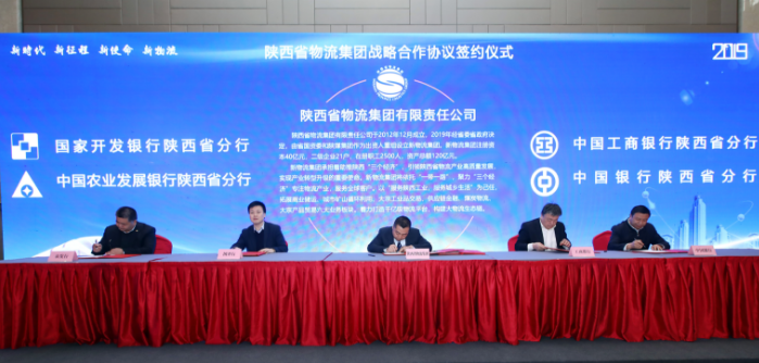 會上,新成立的陜西物流集團(tuán)分別與西安國際港務(wù)區(qū)管委會、延長石油集團(tuán)有限公司、京東物流西北分公司、中遠(yuǎn)海運集裝箱運輸有限公司、江蘇悅達(dá)集團(tuán)有限公司、浙江中大物產(chǎn)集團(tuán)公司6家單位簽訂了戰(zhàn)略合作協(xié)議。與國家開發(fā)銀行陜西省分行、中國農(nóng)業(yè)發(fā)展銀行陜西省分行、中國工商銀行陜西省分行、中國銀行陜西省分行、中國農(nóng)業(yè)銀行陜西省分行、中國建設(shè)銀行陜西省分行、交通銀行陜西省分行、中國光大銀行西安分行8家金融機(jī)構(gòu)簽訂了協(xié)議,8家銀行共向陜西物流集團(tuán)綜合授信1060億元。陜西物流集團(tuán)還與西安交通大學(xué)(管理學(xué)院)和長安大學(xué)兩所高等院校簽訂了合作協(xié)議。