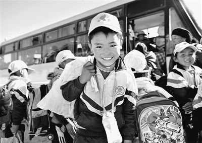目前,西藏日喀則市對桑珠孜區(qū)寄宿制中小學校學生進行分時分片接送,解決了7000多名學生的安全上下學問題。圖為甲措雄中心小學的寄宿學生準備乘坐校車回家。晉美多吉攝(新華社發(fā))