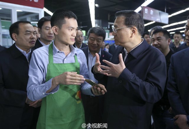 李克強(qiáng)4月26日考察成都市益民菜市,了解內(nèi)貿(mào)流通改革試點和農(nóng)產(chǎn)品供求及價格情況?!澳阋粋€月掙多少錢?每天能吃上肉嗎?”李克強(qiáng)一早到成都益民菜市詢問一位買菜市民。