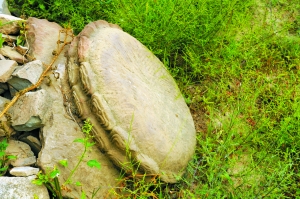 進(jìn)入貂崖溝越深,花朵就越密集,蝴蝶也更多,我們不禁大膽猜測(cè),貂蟬洞已經(jīng)不遠(yuǎn)了。在第一座山崖的盡頭,我們發(fā)現(xiàn)了泉水的源頭。小小的一灣水,側(cè)立一塊石碑,“鑒泉”二字刻于其上,相傳這里曾經(jīng)是貂蟬飲水之處。好一個(gè)鑒泉,好一個(gè)谷深幽靜的地方,繁花盛開,蝴蝶起舞,美如仙境,難怪貂蟬會(huì)選擇此處。