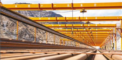 4月23日,拉林鐵路今年復(fù)工以來的首列長鋼軌進(jìn)入?yún)f(xié)榮鋪架基地。袁 泉 丁慶濱攝影報(bào)道