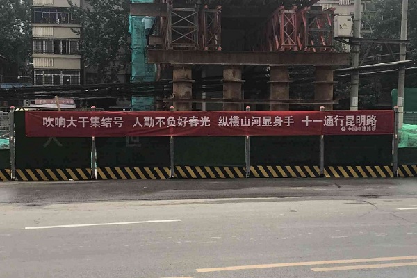 昆明路高架橋項(xiàng)目部圍擋公告。新華網(wǎng)發(fā)