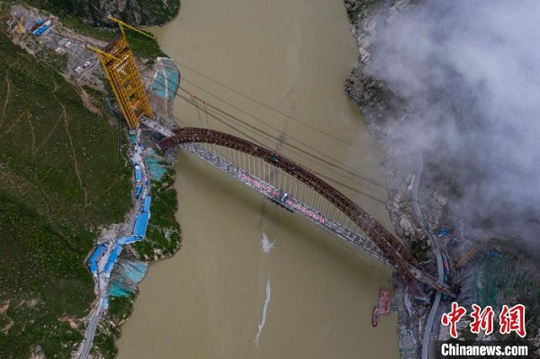 圖為6月20日,航拍合龍后的藏木特大橋。 何蓬磊 攝