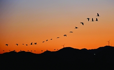 臧爾軍望著余暉中,逐漸遠去的“一”字形、“V”字形隊伍,如同送別老友,站在山頭揮手。