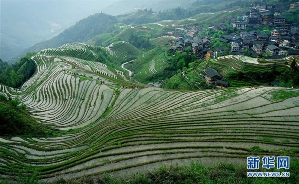 廣西龍脊梯田的一處景觀(2016年4月10日攝)