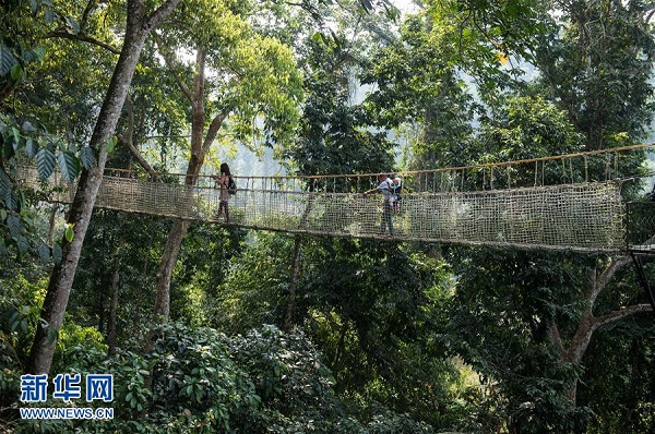 云南省西雙版納傣族自治州勐臘縣“望天樹”熱帶雨林主題公園景區(qū)內(nèi)森林茂密,郁郁蔥蔥,吸引了許多游客來此旅游。望天樹是西雙版納熱帶雨林中最高大的喬木。這種樹樹干筆直,高出一般樹叢20多米,形成森林上面還有森林的奇觀。