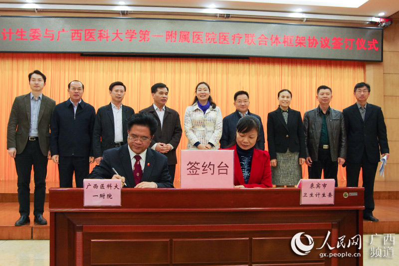 人民網(wǎng)來(lái)賓3月24日電(張紅璐、農(nóng)冠斌)3月24日,廣西醫(yī)科大學(xué)第一附屬醫(yī)院牽頭與來(lái)賓市衛(wèi)生計(jì)生委、來(lái)賓市人民醫(yī)院、興賓區(qū)人民醫(yī)院、合山市人民醫(yī)院、象州縣人民醫(yī)院,組建了廣西首個(gè)跨區(qū)域醫(yī)療聯(lián)合體(下簡(jiǎn)稱“醫(yī)聯(lián)體)。醫(yī)聯(lián)體將在資源共享、醫(yī)療技術(shù)、人才培養(yǎng)、醫(yī)院管理、學(xué)術(shù)交流、項(xiàng)目合作、科教合作、雙向轉(zhuǎn)診等方面展開(kāi)協(xié)作。
