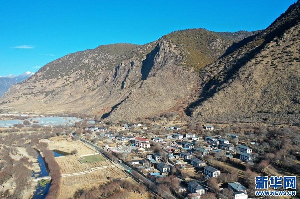 這是西藏林芝市米林縣派鎮(zhèn)索松村一角(無(wú)人機(jī)照片,1月28日攝)。新華社記者 詹彥 攝