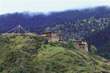 在徹底了解藏式碉樓之前,我們有必要先仔細(xì)看看村子的格局,因?yàn)榈飿堑倪x址與村子的格局有著密不可分的聯(lián)系。它們或沿地勢(shì)平坦的瑪柯河畔修建,或依山就勢(shì)成階梯狀修建,整個(gè)建筑群與山水間形成了一幅優(yōu)美的山水畫卷。