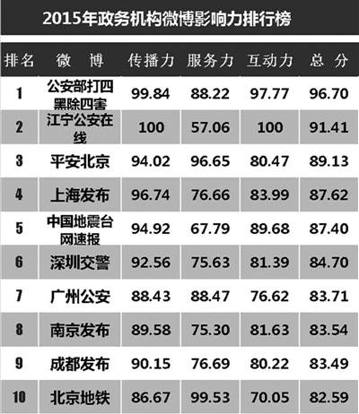 2015年政務(wù)微博指數(shù)風(fēng)云榜發(fā)布 陜西排名第九