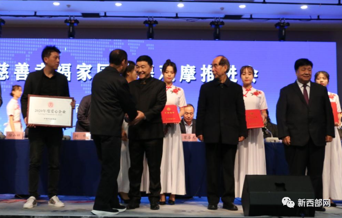 ▲陜西鴻瑞投資集團(tuán)有限公司董事長(前右三)榮獲2020年度全國慈善會(huì)宣傳推薦活動(dòng)“愛心企業(yè)家”稱號。王順利/攝影(新西部網(wǎng)發(fā))