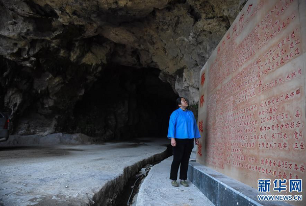 貴州省羅甸縣沫陽鎮(zhèn)董架社區(qū)麻懷村,村民世代生活在幾乎與世隔絕的深山之中。為了修建一條“出山之路”,村民鄧迎香與眾鄉(xiāng)親先后兩次用鋼釬、錘子開鑿出200多米的“人工隧道”,終于將麻懷村與山外世界連通。而鄧迎香,也被人們譽(yù)為“女愚公”。新華社記者 歐東衢 攝
