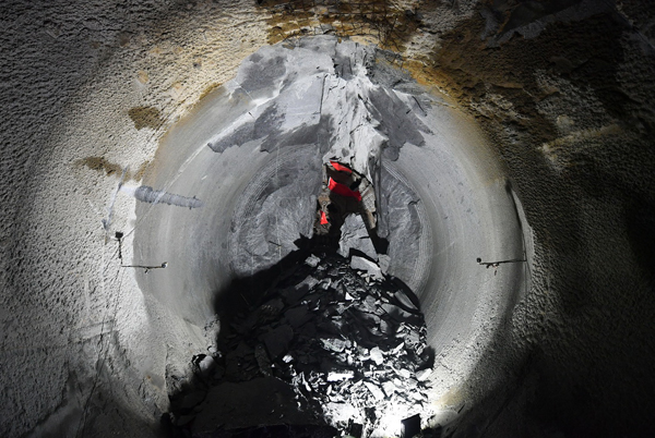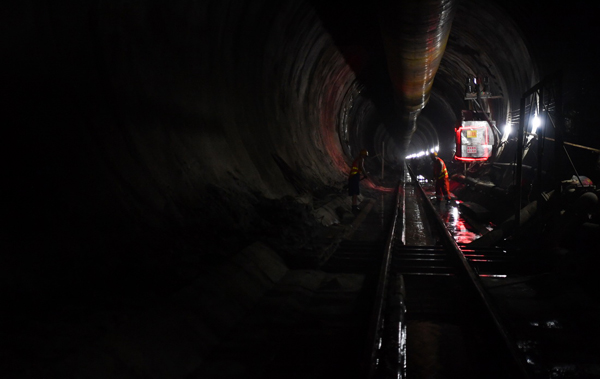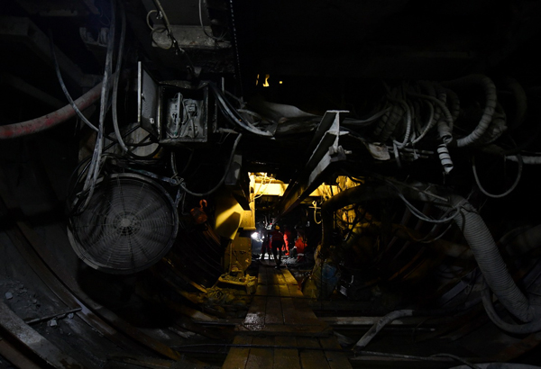 2月22日,工人在陜西引漢濟(jì)渭工程秦嶺輸水隧洞施工現(xiàn)場(chǎng)工作。