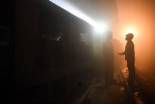 2月22日,工作人員在陜西引漢濟(jì)渭工程秦嶺輸水隧洞施工現(xiàn)場(chǎng)交流。