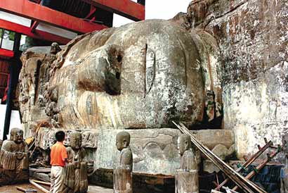 巨型的臥佛佛頭(圖片來源:重慶日報)