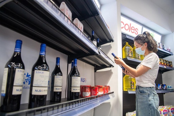 消費(fèi)者在位于重慶解放碑的“陸海新通道國(guó)際消費(fèi)中心”選購商品。(2022年5月28日攝)。新華社記者唐奕攝