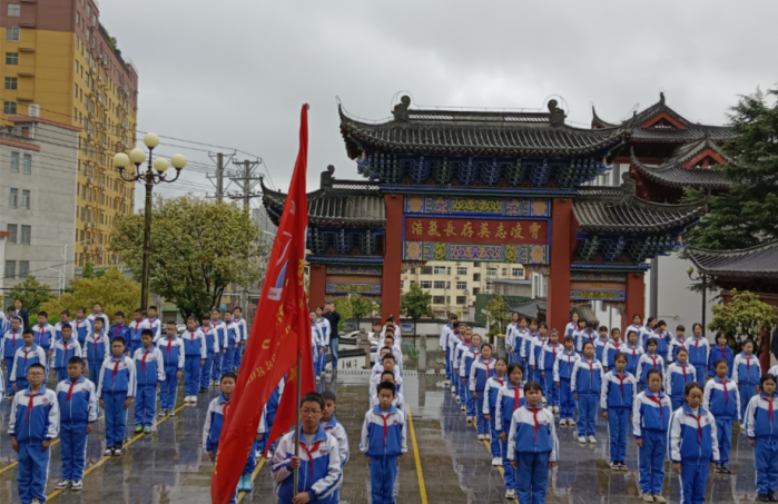 本次活動由大隊輔導員劉瑞玲同志主持,共有三個環(huán)節(jié):一是重溫歷史,致敬英雄。二是獻唱隊歌,莊嚴宣誓。三是瞻仰豐碑,繼承遺志。