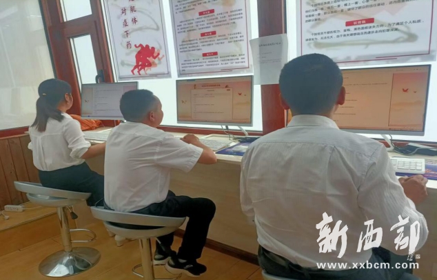 走進(jìn)黨性診療體檢中心,工作人員熱情接待,向我們?cè)敿?xì)介紹了黨的光輝歷程,用動(dòng)漫的形式再現(xiàn)了開(kāi)展黨性黨紀(jì)學(xué)習(xí)教育的重要性。黨旗面前,全體黨員肅穆站立,高舉右拳,重溫入黨誓詞,接受心靈的凈化和洗禮。隨后登錄黨性體檢新系統(tǒng),對(duì)黨員個(gè)人政治理論應(yīng)知應(yīng)會(huì)知識(shí)進(jìn)行測(cè)試、黨員個(gè)人“黨性自評(píng)”和“黨性互評(píng)”三項(xiàng)進(jìn)行了全面“體檢”。