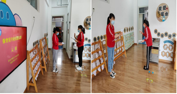 根據(jù)《陜西省保育員工作指南(修訂)》中的要求,教師們流程規(guī)范,動作嫻熟,規(guī)范的展現(xiàn)了入園環(huán)節(jié)的內(nèi)容。