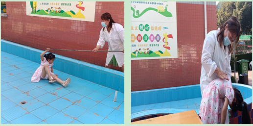 演練中,通過幼兒、教師代表以情景模擬的形式再現(xiàn)了幼兒溺水、身邊伙伴及時(shí)呼救成年人、撥打急救電話、借助木棍、游泳圈等物體將溺水者成功就上岸的場(chǎng)景,讓幼兒更加直觀地知道不能獨(dú)自去河邊、池塘邊玩水,如果不慎溺水后要大聲呼救;如發(fā)現(xiàn)溺水的小朋友,不要盲目下水施救,要尋求大人的幫助。