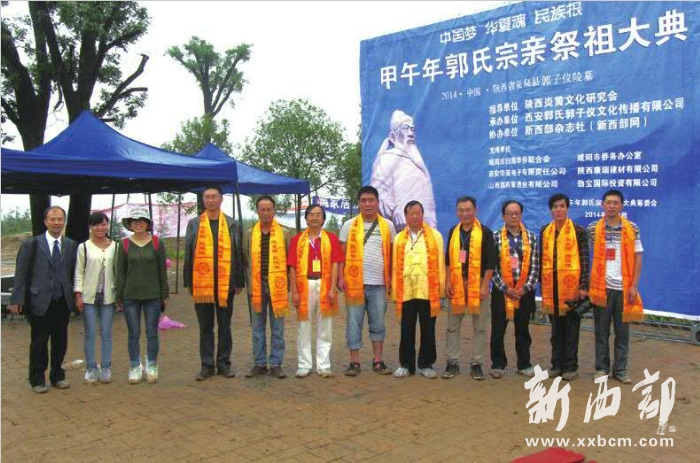 2014年9月9日,“甲午年郭氏宗親祭祖大典”冒雨在禮泉縣郭子儀陵墓前舉行。2012年9月30日,首屆郭氏宗親祭祖大典就被禮泉縣官方作為公祭進(jìn)行,這為此后祭奠郭子儀開創(chuàng)了典范。2013年9月9日,第二屆大典被作為民祭進(jìn)行,同時(shí)確定以后每年大典都在這一天舉行。今年祭祖大典仍然是民祭。